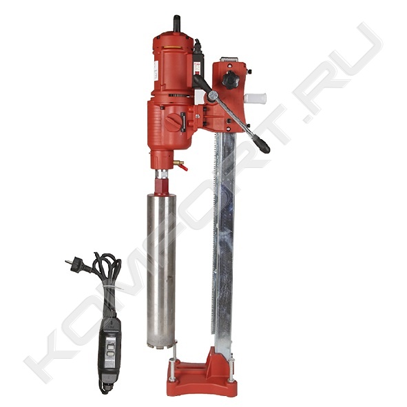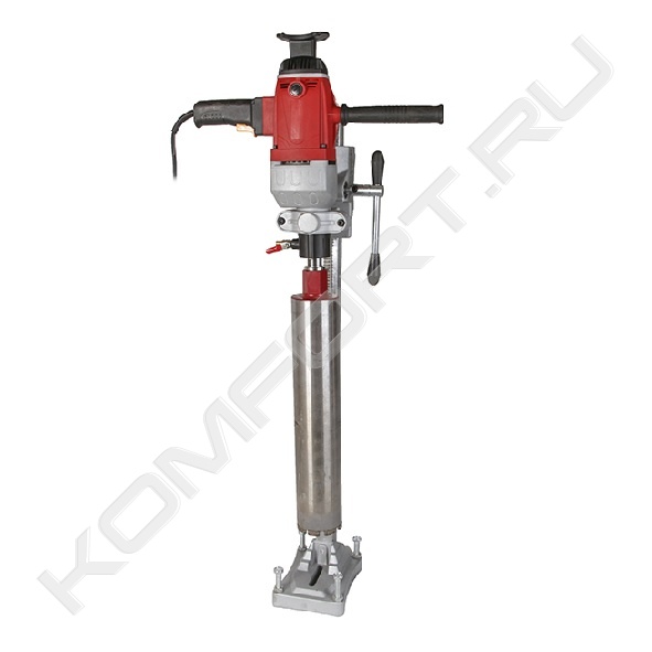 - Каретка фиксируется запорным винтом для предотвращения её перемещения при замене сверлильной коронки и транспортировке установки.